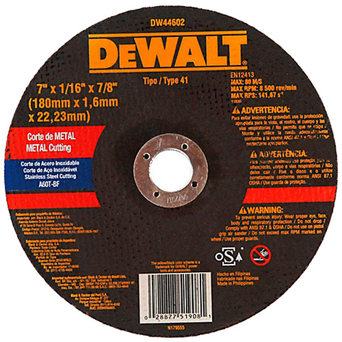 DISCO DE CORTE DE 7” X 1/16 DE ESPESOR, DW44602